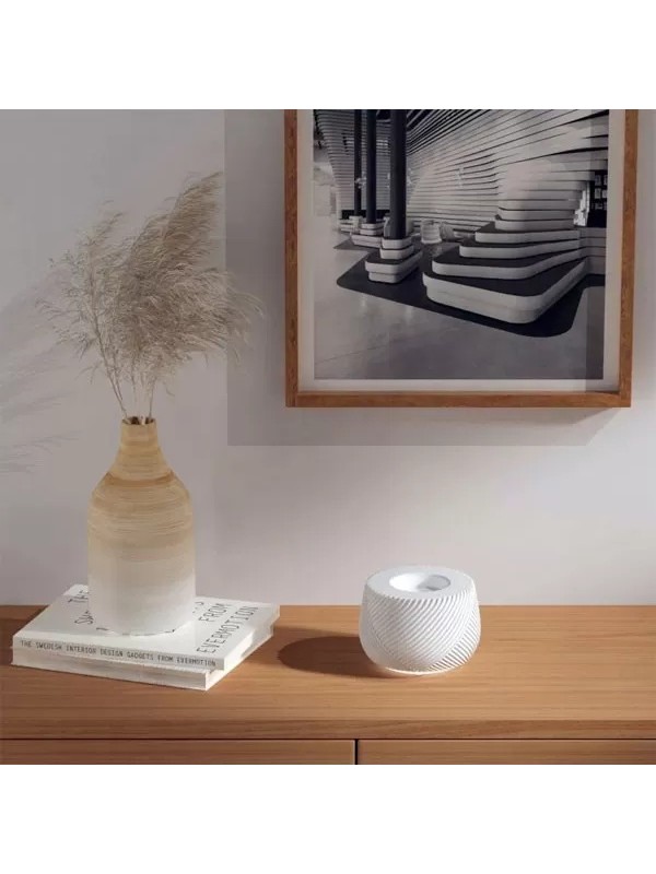 Het strakke ontwerp en de subtiele lichtgevende halo maken het tot een aantrekkelijk decoratief element, ideaal voor het bevorderen van ontspanning en kalmte.