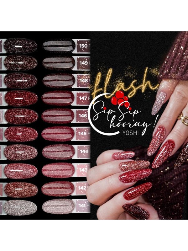 Laat je nagels stralen met de betoverende Yoshi Gelpolish Sip Sip Hooray collectie! Deze fantastische glittercollectie brengt een sprankeling van feestelijkheid en glamour naar je manicure. Met een glinsterend flash-effect dat je nagels laat shinen als nooit tevoren, is deze collectie perfect voor elke gelegenheid – van feesten tot dagelijkse looks.