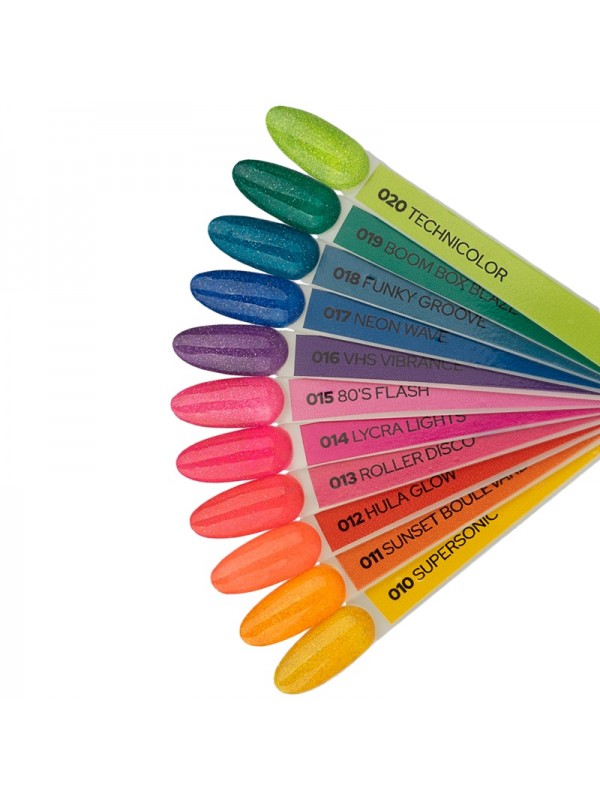 We nemen je mee op een reis terug in de tijd naar de magische jaren 80, waar neonflitsen dansten in het licht van een discobal. Elke kleur van deze collectie is als een stuk van een vergeten vinylplaat die in al zijn glorie weer tot leven komt. En dankzij het FLASH-effect weerkaatsen je nagels de reflecties van discolichten op een overvolle dansvloer!