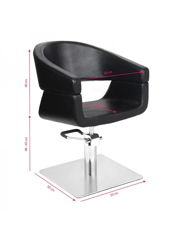 Een moderne kappersstoel met een uniek design. Een zeer comfortabel meubelstuk, ideaal voor moderne salons. De stoel is speciaal gevormd om een comfortabele houding voor de klant tijdens de behandeling te garanderen. De kapperstoel is in hoogte verstelbaar middels een hydraulische pomp. De stoel is stabiel en stevig en de bekleding is gemaakt van hoogwaardig ecoleer. De kleur zwart.