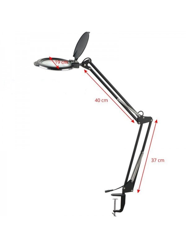 De loeplamp kenmerkt zich door een zeer stabiel frame, dankzij de SMD LED's schijnt hij helder bij een laag stroomverbruik. Dankzij de glazen lens kunt u de huid vergroot bekijken en tegelijkertijd een uitstekende verlichting bieden op het werkgebied. De loupelamp is geschikt voor voor manicures en pedicures, permanente make-up en ontharing en is zeer ideaal voor schoonheids-, tandheelkundige, veterinaire en vele andere industrieën.