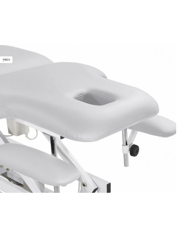 * De massagetafel / behandeltafel heeft een elektrisch verstelbaar rugdeel (zowel postieve als negatieve hoek)