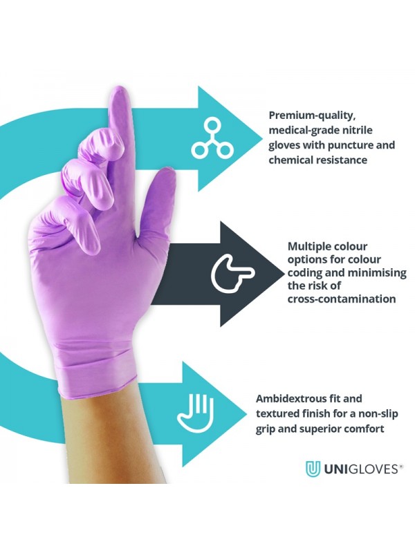 Unigloves de beste poedervrije wegwerp nitril handschoenen voor eenmalig gebruik, top kwaliteit voor de beste prijs.