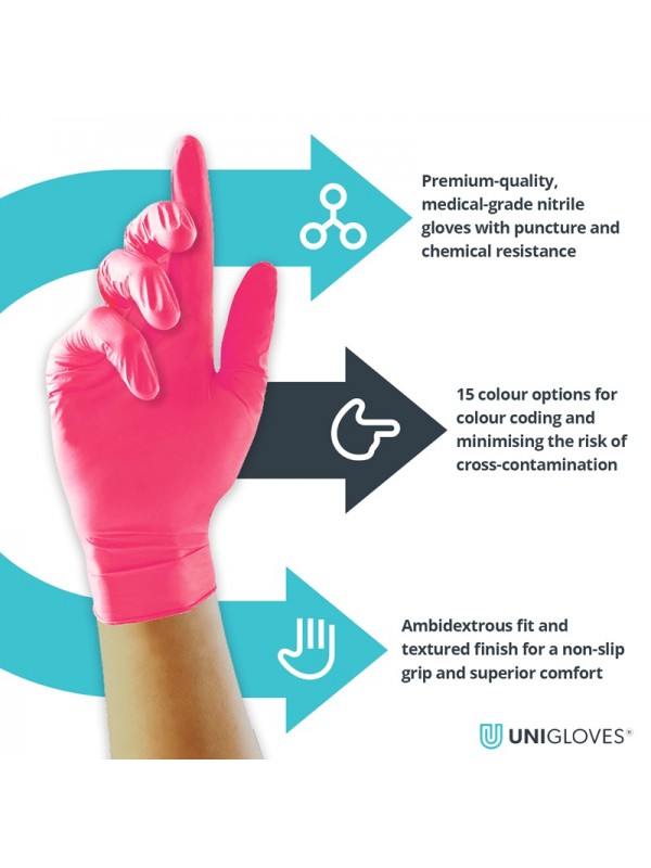 Unigloves Pearl nitril handschoenen zijn verkrijgbaar in diverse moderne en frisse kleuren.