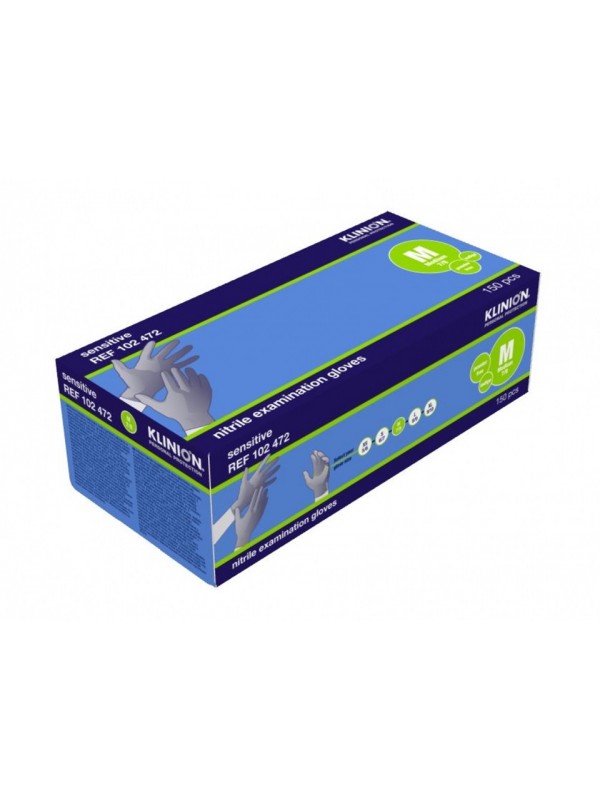 KLINION personal protection sensitive, poedervrije onderzoekshandschoen van nitril; voor medisch gebruik om zowel patiënt als gebruiker te beschermen tegen kruisinfectie.