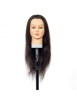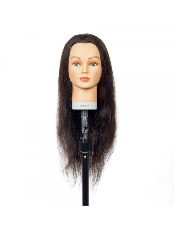 Dit oefenhoofd van Sibel heeft natuurlijk haar met een Medium dichtheid van 200-230 haren per vierkante centimeter en 45 tot 60 cm lengte. De oefenhoofden met menselijk haar hebben een perfecte hygiëne doordat het haar 7 zuiveringsbaden ondergaat. Elk haartje wordt met de hand geïmplanteerd (op 90°) volgens klassiek groeipatroon en densiteit, zodat kappers in opleiding 100% waarheidsgetrouw kunnen leren.