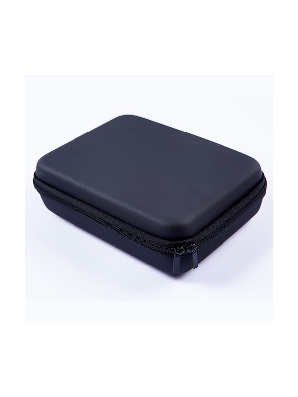 Maten hardcase met ritsen zijkanten 23 cm lang, 18 cm breed en 6.5 cm diep.