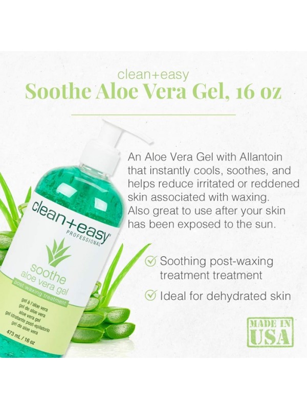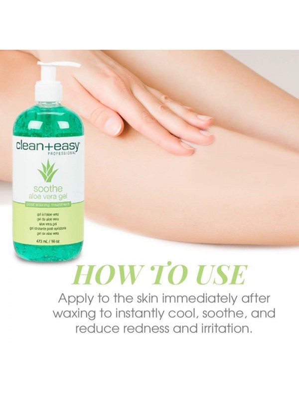 Clean+Easy Soothing gel bevat Aloe Vera en helpt de huid te kalmeren en te herstellen na de harsbehandeling. Aloe Vera zal de verstoorde vochthuishouding snel doen herstellen.