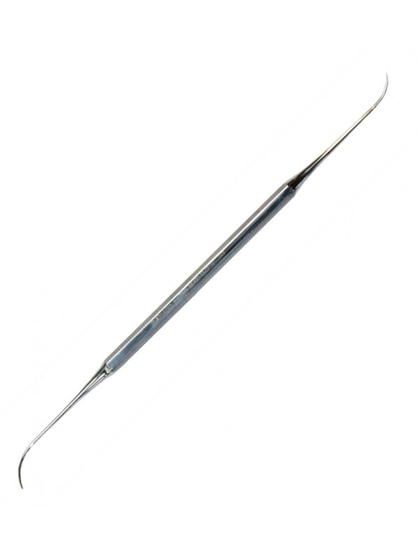Aan beide zijde van dit rvs instrument zit een gebogen bocht met spitse punt