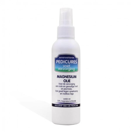 De Magnesium Olie van Samenwerkende Pedicures werkt effectief tegen rusteloze benen en krampen. Het kalmeert ook een psoriasis huid.
