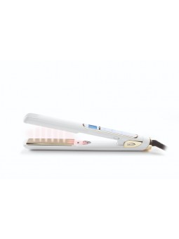 Professionele stijltang met infrarood en ionische technologie creëert een verbazingwekkende glans en is gezonder voor het haar. De infraroodwarmte dringt rechtstreeks door in de cortex van het haar en verwarmt het van binnenuit. Dit helpt de natuurlijke vochtbalans van het haar te behouden en voorkomt uitdroging. Dankzij de ionische technologie wordt statische elektriciteit uitgesloten en wordt kroes op een zachte manier snel geëlimineerd. Met het supersnelle MCH verwarmingselement wordt een temperatuur van 180°C bereikt in slechts 20 seconden. Dankzij het digitale LCD-display met aanraakbediening kun je de juiste temperatuur instellen (120°-230°C).