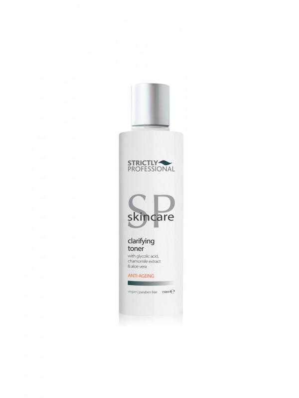 SP Anti-Aging Clarifying Toner met glycolzuur, kamille-extract en aloë vera is eenzuiverende toner met 2% glycolzuur om de poriën zacht maar effectief te reinigen en dode huidcellen te verwijderen. Werkt om de huidtint gladder, helderder en egaler te maken.