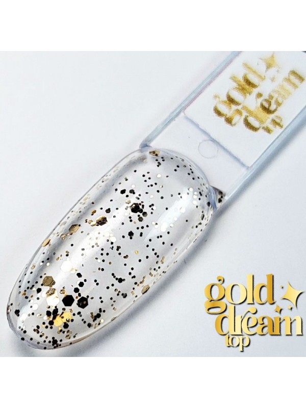 In de tijd van de goudkoorts droomde iedereen ervan om rijk te worden. Nu kun je diezelfde sensatie en luxe op je nagels voelen met Gold Dream Top. Deze hybride topcoat, gevuld met goudvlokjes van verschillende grootte, brengt de sfeer van gouden tijden naar je vingertoppen.