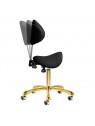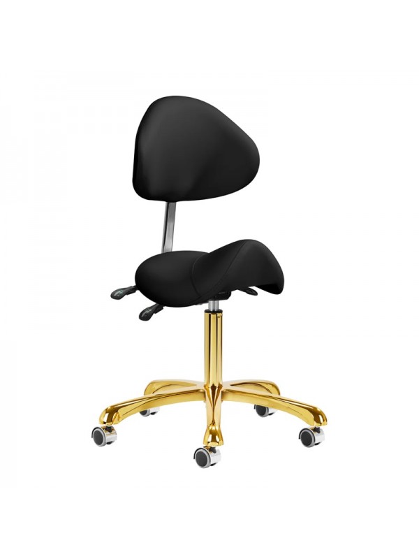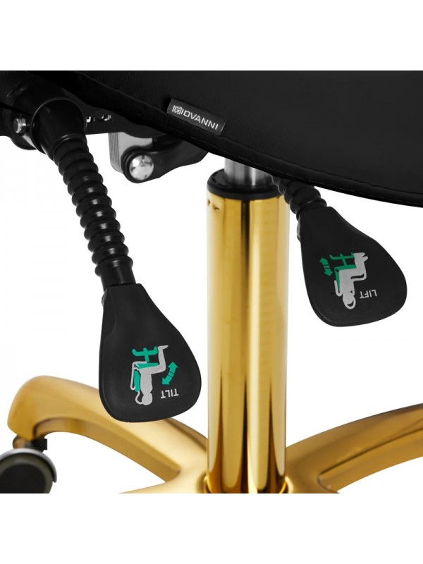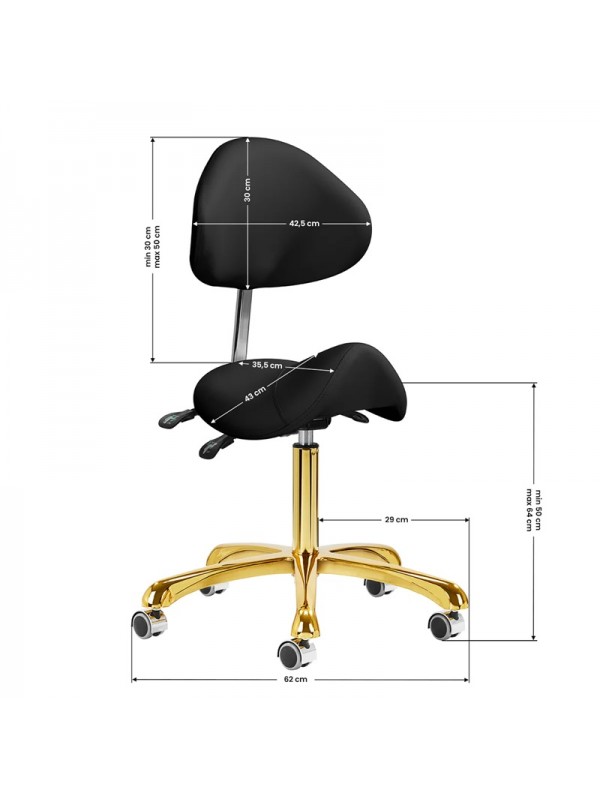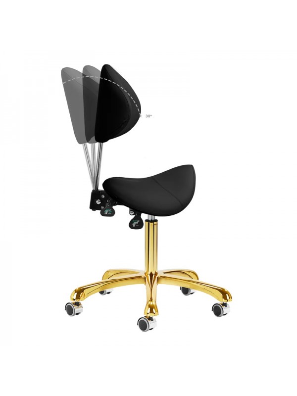 De Zadelkruk met Verstelbare Rugleuning Giovanni 1004 Goud-Zwart combineert ergonomisch comfort met functionaliteit, speciaal ontworpen voor professioneel gebruik in salons en praktijken. De verstelbare zithoogte van 50 tot 64 cm zorgt voor een optimale werkhouding, terwijl de verstelbare rugleuning tot 20 cm in hoogte verstelbaar is en 30º kan kantelen, zodat u uw werkhouding gemakkelijk kunt aanpassen.